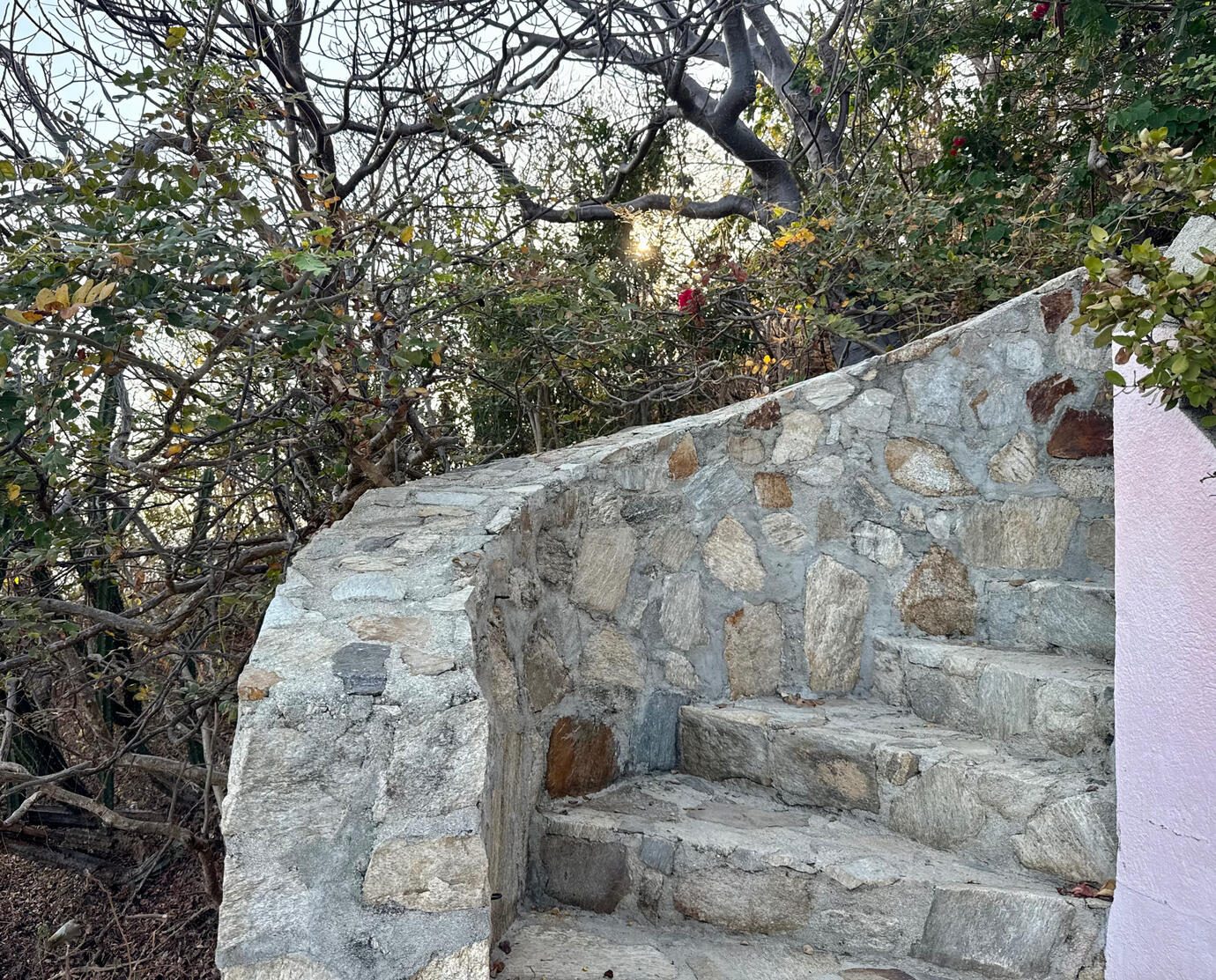 Stone Transitions: Descend the stone steps to the main living level, where the kitchen and primary living area open directly to unobstructed Pacific views. It is a home of transitions, moving from street-level accessibility to private seaside terraces.